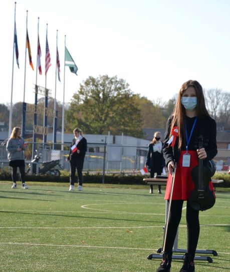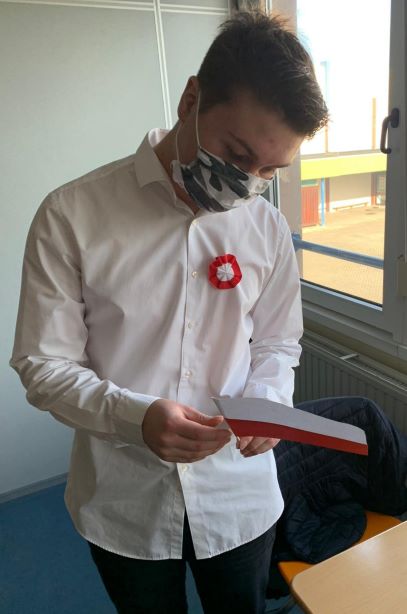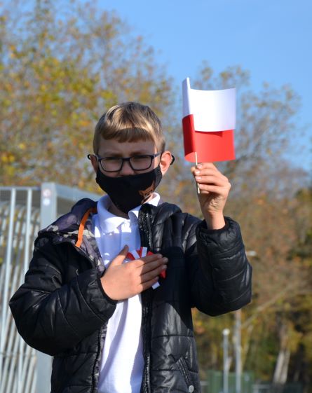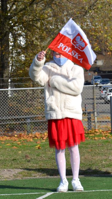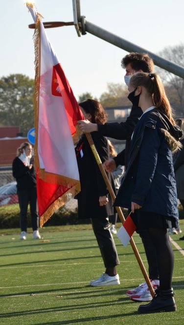 w Brunssum jedną, wielką, biało – czerwoną rodzinę i w tym bardzo trudnym dla wszystkich czasie pandemii uczcili i powitali Święto Niepodległości. O godzinie 12.30 na ogromnym boisku Międzynarodowej Szkoły AFNORTH w Brunssum rozbrzmiał „Mazurek Dąbrowskiego”. Pełni powagi, odświętnie ubrani, z przypiętymi kokardami narodowymi i przygotowanymi własnoręcznie biało-czerwonymi chorągiewkami uczniowie, zebrali się, by wspólnie uczcić święto naszej Ojczyzny. Wspólne odśpiewanie hymnu narodowego rozpoczęło się od solowego występu uczennicy klasy piątej Milenki Opieli, która wykonała hymn na skrzypcach (!). Uroczystość poprzedziły lekcje poświęcone tematyce Niepodległości i wspólna refleksja nad dziejami narodu polskiego.