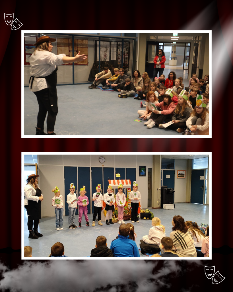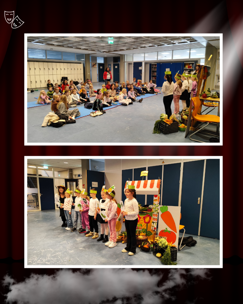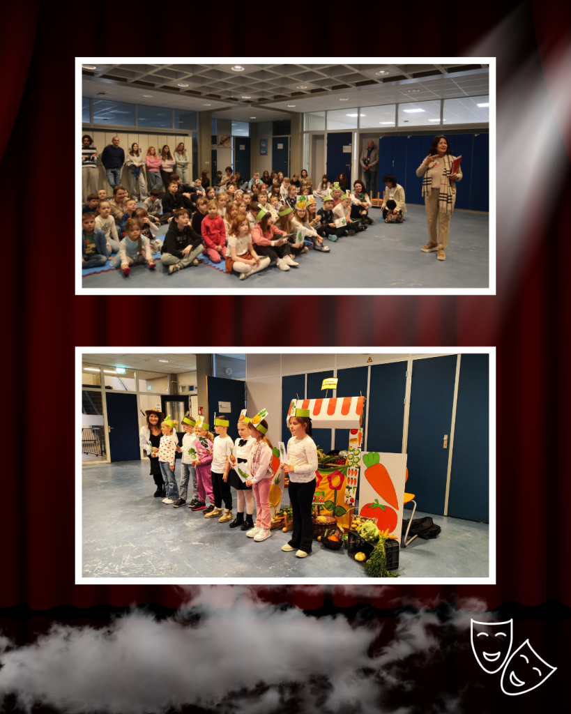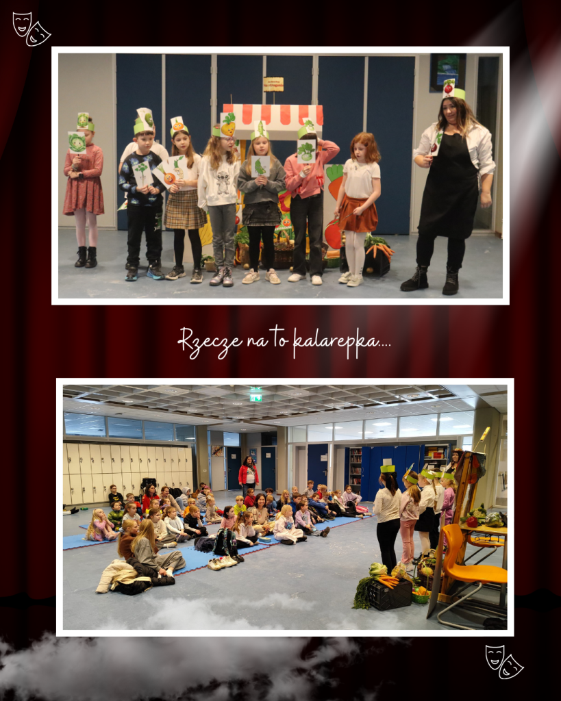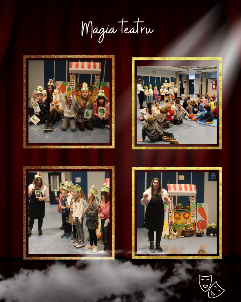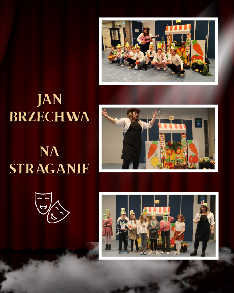 W drugiej części przedstawienia uczniowie klas 1b i 2a zabrali nas w dalszą część tej niezwykłej podróży. Z ogromnym zaangażowaniem zaprezentowali wiersz Jana Brzechwy ,, Na straganie’’, pokazując, że klasyczna literatura dziecięca może być niezwykle zabawna. Na scenie było wszystko: wyraziste gesty, odważne głosy, humor, emocje i ogromna dziecięca energia. Pojawiły się warzywa z charakterem. Młodzi aktorzy udowodnili, że nawet na straganie każdy chce być ważny i zauważony. A choć bohaterowie wiersza się spierają, razem tworzą barwną, rytmiczną historię, która od lat bawi i uczy kolejne pokolenia.