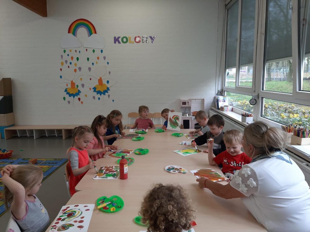Zajęcia „W krainie kolorów” były nie tylko świetną zabawą, ale także cenną lekcją rozwijającą kreatywność, wyobraźnię oraz umiejętność współpracy. Dzieci z radością uczestniczyły w proponowanych aktywnościach, a zdobyte doświadczenia z pewnością na długo pozostaną w ich pamięci.