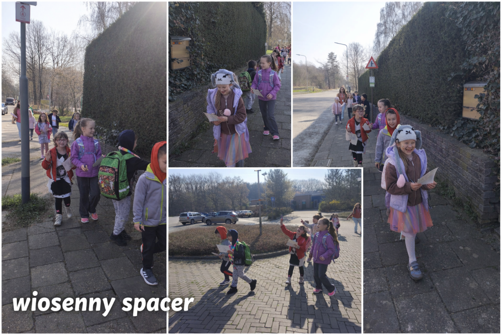 Następnie wraz z nauczycielami wybrały się na poszukiwanie wiosny. Tropem natury było hasłem wiosennego spaceru było, w czasie którego, dzieci zamieniły się w małych odkrywców i z wielkim zaangażowaniem szukały wiosny. Udało nam się dostrzec pierwsze pąki na drzewach i usłyszeć radosny śpiew ptaków.